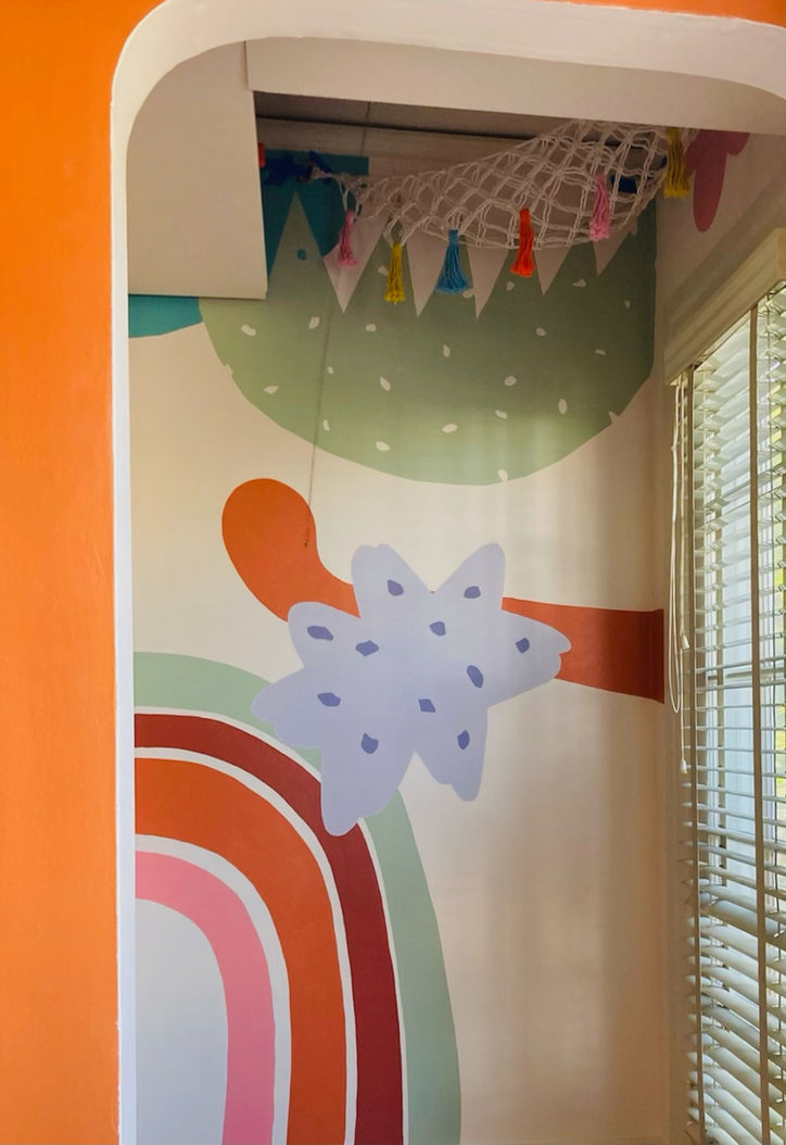 We transformed an oversized closet into a cozy baby nook, creating a safe and welcoming space for a newborn to sleep and store clothes, toys, and accessories. The project included a playful yet practical custom storage system, a hand-painted mural, and curated furniture, lighting, and accessories—all designed to bring comfort and joy to both baby and mother.